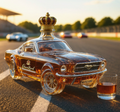 This handcrafted Mustang whiskey decanter fuses two icons of American culture: the muscle car and a fine pour. Designed in striking detail, the decanter takes the form of a classic Mustang, complete with chrome accents and a matching glass tumbler for the perfect sip.